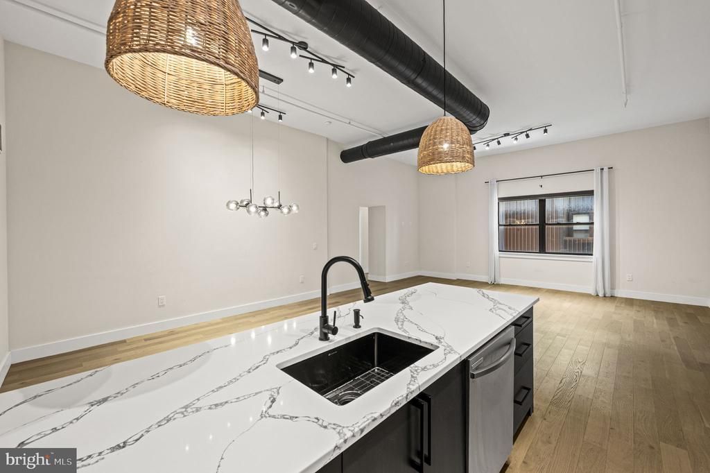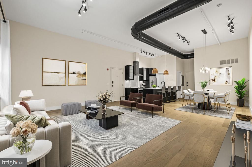 Welcome to a fully reimagined luxury loft residence in the heart of Northern Liberties, offering dramatic scale, refined finishes, and approximately $125,000 in recent renovations. This expansive 2-bedroom, 2-bath home is defined by soaring 16-foot ceilings, oversized open living space, and striking architectural details including exposed ductwork, designer lighting, and wide-plank hardwood flooring throughout. The result is a rare combination of modern sophistication and authentic loft character. At the center of the home is a stunning chef’s kitchen, newly installed and designed for both entertaining and everyday living. The space features custom cabinetry, quartz countertops, a large statement island, and brand-new appliances including oven, microwave, dishwasher, and exhaust hood. The open layout flows seamlessly into the oversized living and dining area, creating an exceptional entertaining space rarely found in city condominiums. The primary suite offers a true retreat, featuring a large walk-in closet with built-in storage and a beautifully designed spa-inspired bathroom. The primary bath includes a freestanding soaking tub, oversized glass shower, and elegant finishes that create a calm area for respite. The second bedroom also includes a walk-in closet, while the second bathroom has been completely renovated with new fixtures, tilework, and modern finishes. Additional recent upgrades include: • Brand-new flooring throughout • New washer and dryer • New hot water heater • New lighting fixtures throughout • New solid-core interior doors, trim, and hardware • Completely renovated bathrooms The home also offers a private entrance to the unit, a rare and valuable feature. Also, included with the property is an assigned parking space with additional storage. The condominium building itself has recently undergone significant improvements, including: • New roof installed January • New garage door installed January • New building entry door • New security camera monitoring system for the lobby and garage The rooftop deck was temporarily removed during the roof replacement and is planned to be reinstalled, offering additional outdoor amenity value. Located on one of Northern Liberties’ most desirable streets, this residence places you steps from the neighborhood’s best restaurants, cafés, parks, and nightlife while offering the scale and comfort of true loft living. A rare opportunity to own a fully renovated luxury loft with parking in one of Philadelphia’s most vibrant neighborhoods.